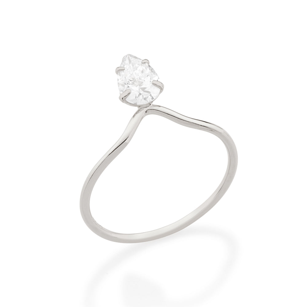 The miss violet collection was inspired by the color of the year and by violets a lovely, and delicate flower. Rommanel has brought the essence of these flowers to the collection and created jewelry that is full of meaning. let yourself be carried away by the delicacy of these flowers too. rhodium ring composed of a thin, curved band with one (1) white zirconia in the shape of a water droplet measuring 5x7mm. rhodium pieces add a lightness to any look. pair it with the matching earring and bracelet to complete the entire look. | material: rhodium plated. | also available in gold plated. "