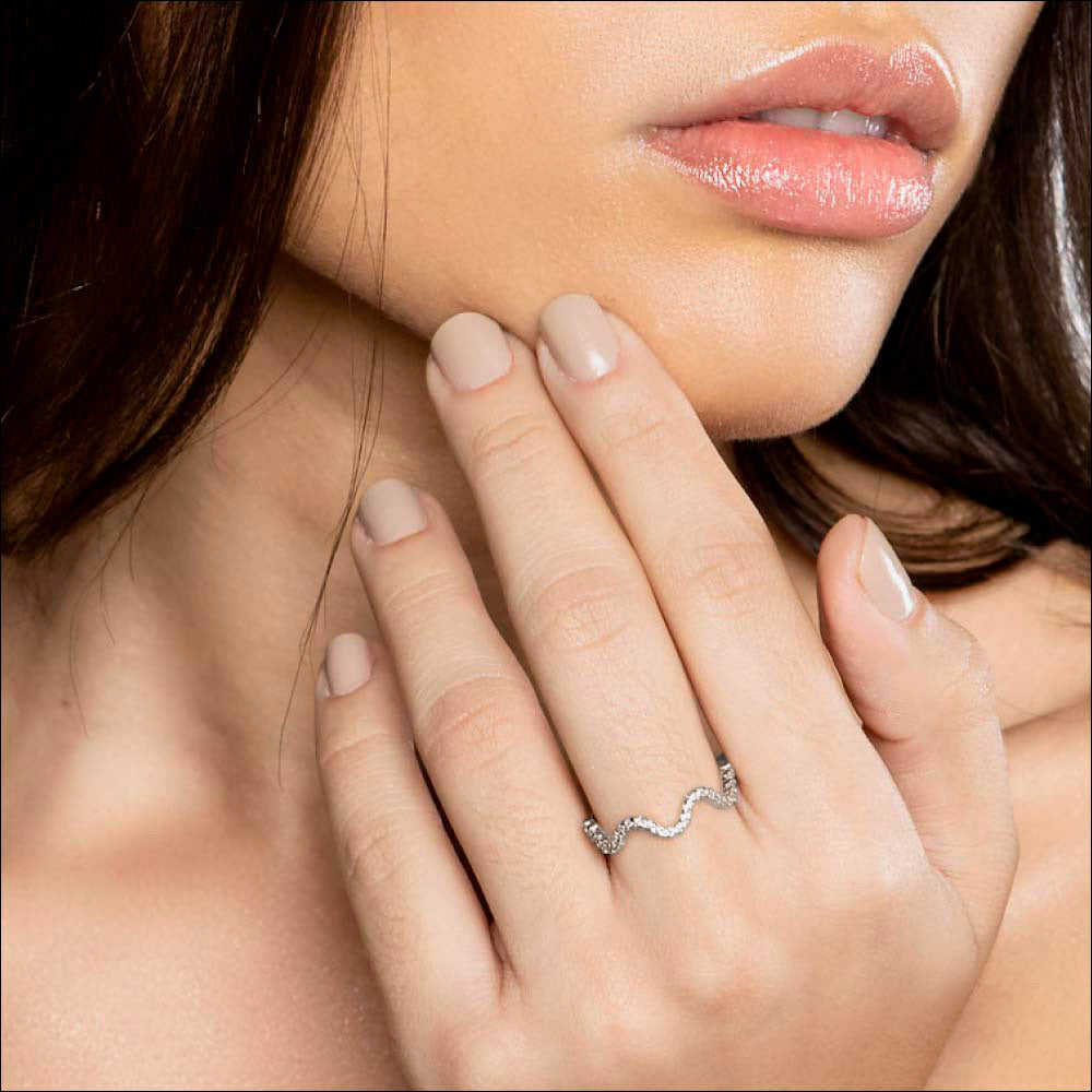 "DESCRIPTION: ROMMANEL INTRODUCES ITS NEWEST COLLETION: ROOTS, A JEWELRY LINE THAT EXPRESSES THE ESSENCE AND ORIGINS OF BRAZILIAN ARTIST DUO SIMONE & SIMARIA. DIVIDED INTO THREE SUBCOLLECTIONS: OUR ESSENCE, SIMONE'S FAVORITES, AND SIMARIA'S FAVORITES, THE COLLECTION BRINGS PIECES THAT EVOKE FAITH, GRATITUDE, FAMILY AND THE LOVE FOR MUSIC. RHODIUM SKINNY RING COMPOSED OF A WAVE DESIGN, ALSO MADE TO REPRESENT THE S IN THE DUO'S NAME, STUDDED WITH THIRTY-ONE (31) WHITE ZIRCONIA MEASURING 1MM EACH. | MATERIAL: RHODIUM PLATED. | ALSO AVAILABLE IN GOLD PLATED AND WITH FUSCHIA OR GREEN ZIRCONIAS. (LICENSED JEWELRY COLLECTION SIMONE & SIMARIA 1ST EDIITION)"