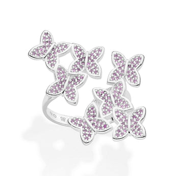 Silver 925 maxi ring composed of seven (7) butterflies studded by one hundred and eighty-two (182) zirconias measuring 0.8mm each with rhodium application. size: 6 to 10.