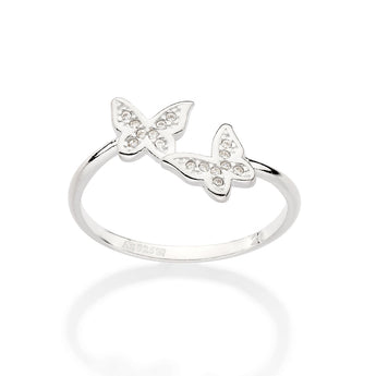 Silver 925 skinny ring composed of two (2) butterflies studded by sixteen (16) white zirconias measuring 1mm each.