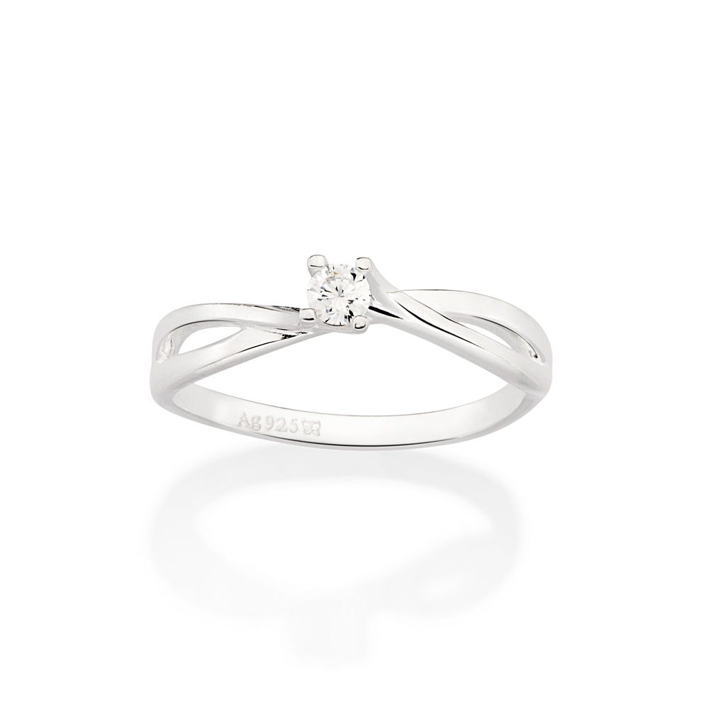 Silver 925 solitaire ring composed of one (1) white zirconia measuring 1.25mm at the center. size: 5 1/4 to 10