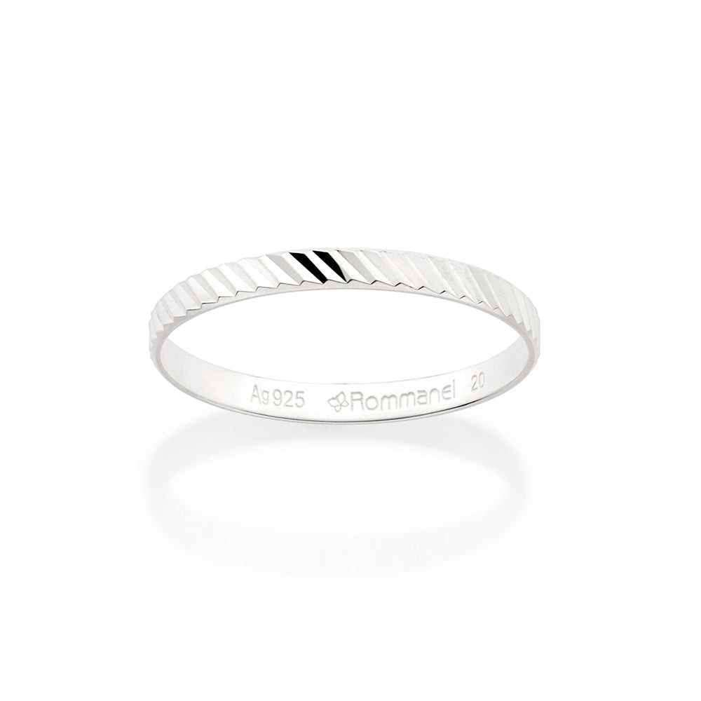 Silver 925 wedding band measuring 2mm in width with a diagonal line texture.