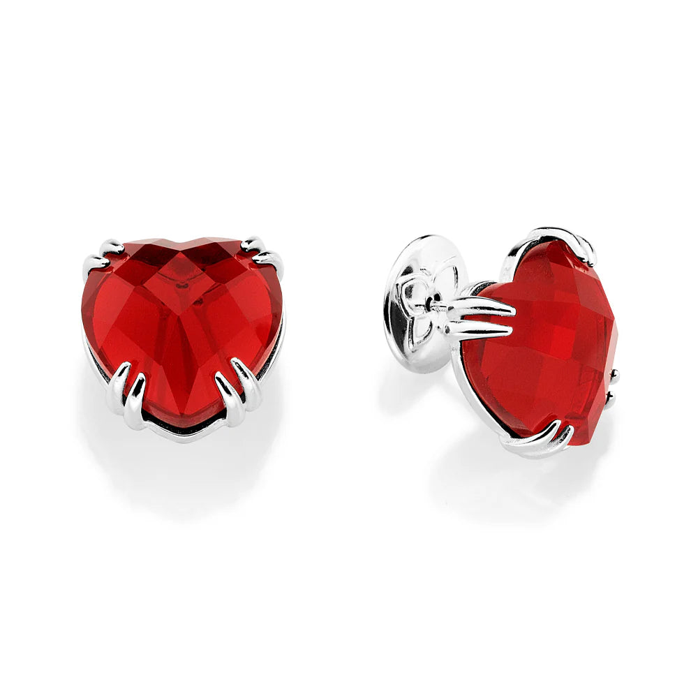 Silver 925 button earrings composed of two (2) red crystals measuring 15x15mm each. size: 1.6cm x 1.5cm (0.62in x 0.59in).