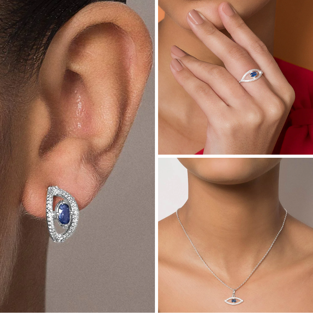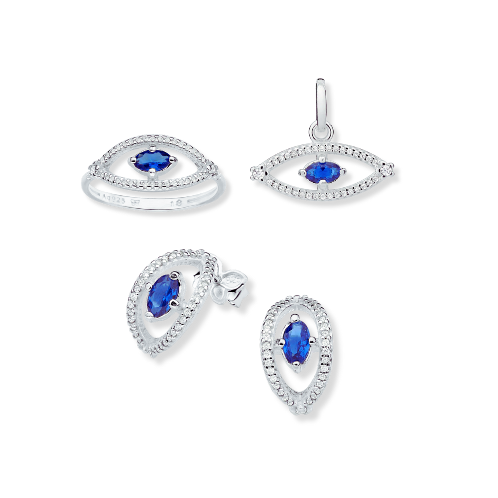 JEWELRY SET SILVER 925 GREEK EYE (EARRINGS + RING + PENDANT)