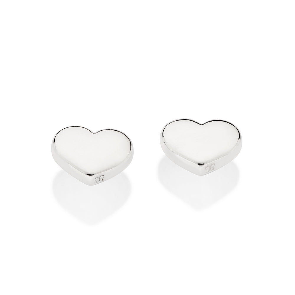 Silver 925 button earrings in the shape of a heart. size: 0.9cm x 1.1cm (0.35in x 0.43in).