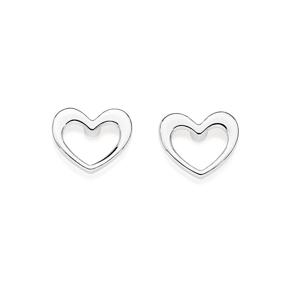 Silver 925 stud earrings in the shape of a heart with a hollow center. size: 0.8cm x 1cm (0.31in x 0.39in).