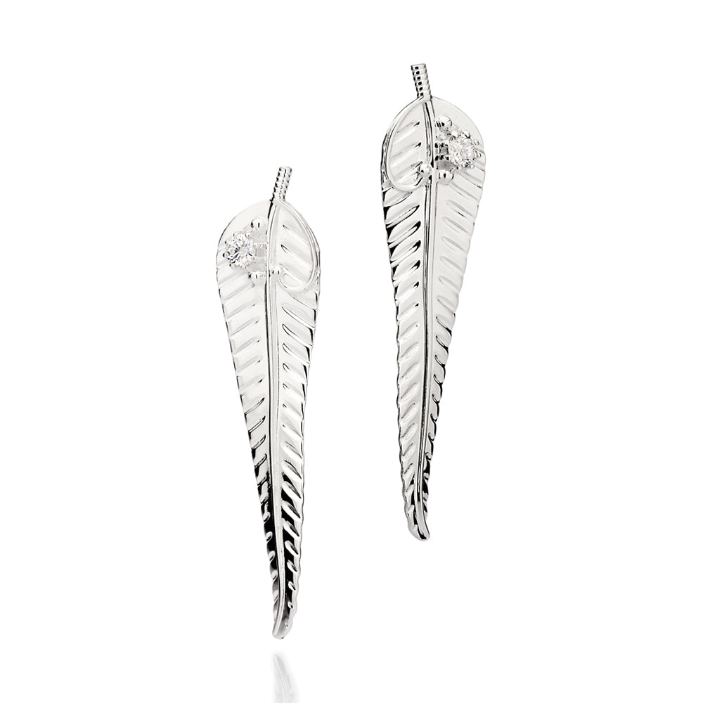 Silver 925 earrings in the shape of a leaf studded by four (4) white zirconias measuring 4mm each. (licensed jewelry collection giovanna antonelli)