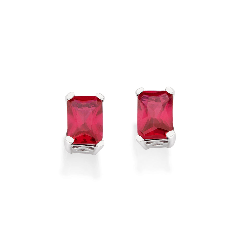 Silver 925 stud earrings composed of two (2) red rectangle zirconias measuring 6x4mm each. size: 0.7cm x 0.4cm.