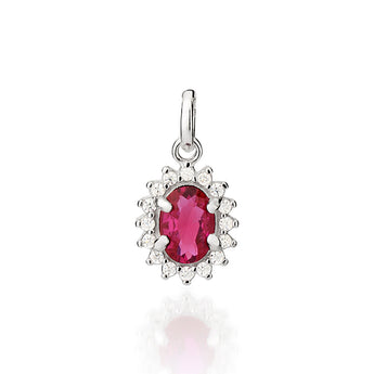 Silver 925 pendant studded by sixteen (16) white zirconias measuring 1.25mm each and one (1) pink zirconia measuring 5x7mm at the center. size: 1.7cm x 0.9cm (0.7in x 0.35in).