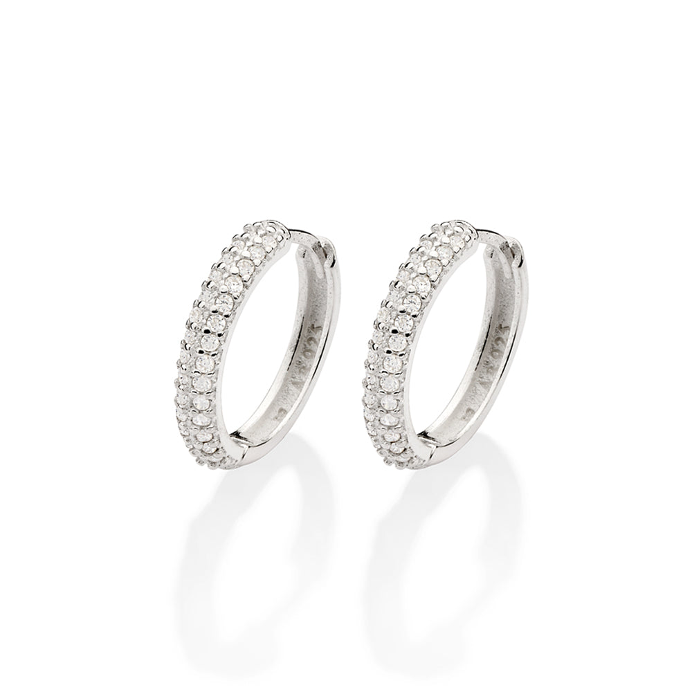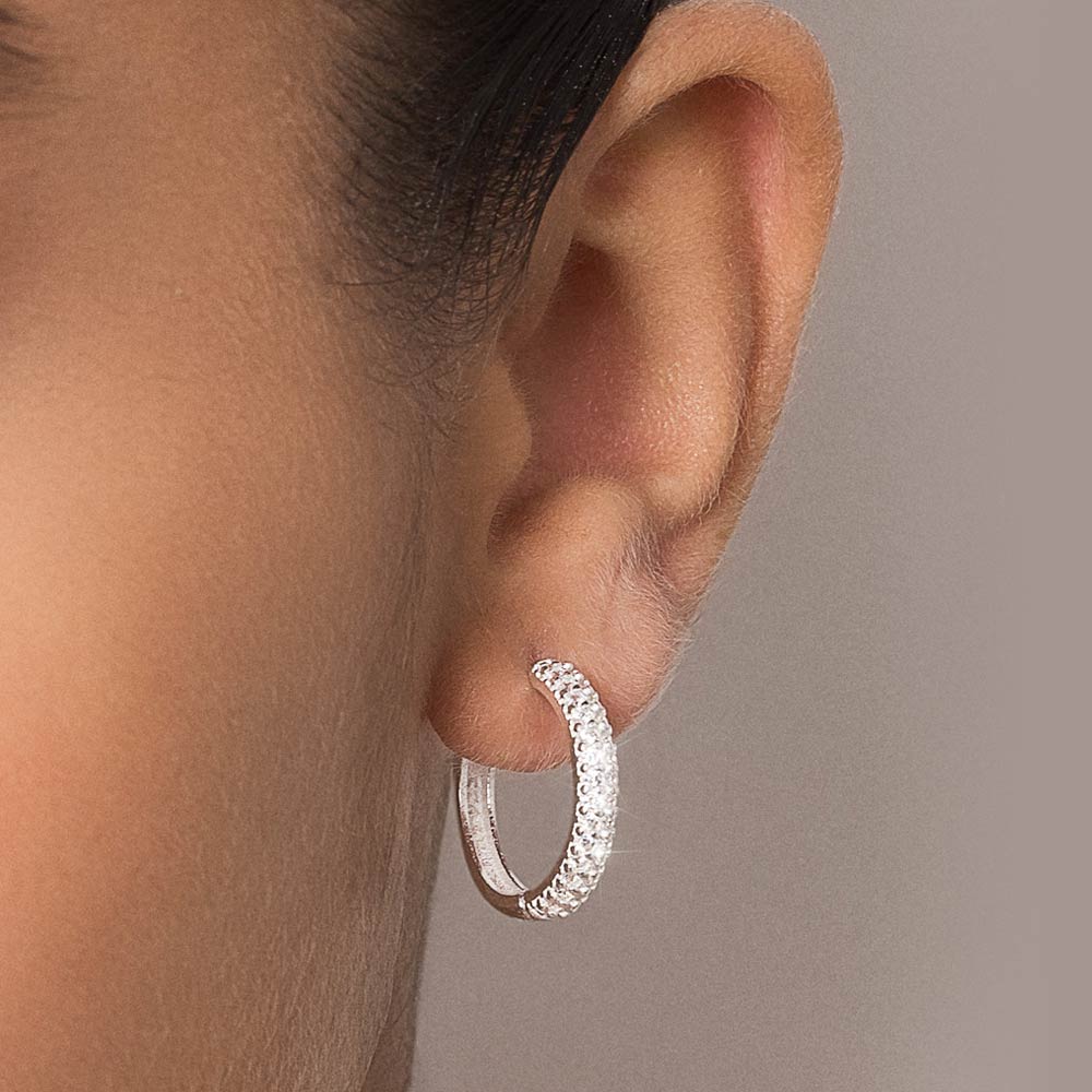 SILVER 925 LARGE HOOP EARRINGS STUDDED BY FIFTY-SIX (56) WHITE ZIRCONIAS MEASURING 1.25MM EACH. SIZE: 1.7CM (0.6IN) IN DIAMETER.