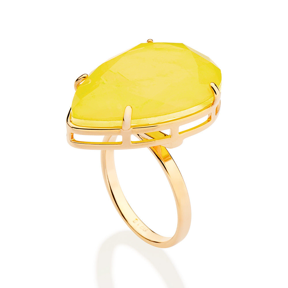 18k gold-plated maxi ring composed of one (1) yellow fusion crystal measuring 25x18mm. size: 14 to 24 (6 to 10).