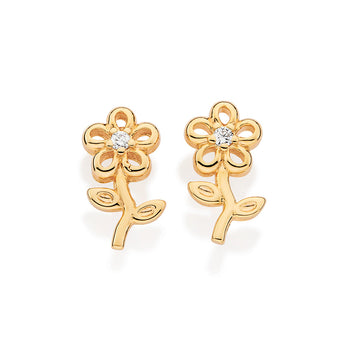 Flower earring with two 1.75 mm zircons. measuring 1.20 cm x 0.60 cm.