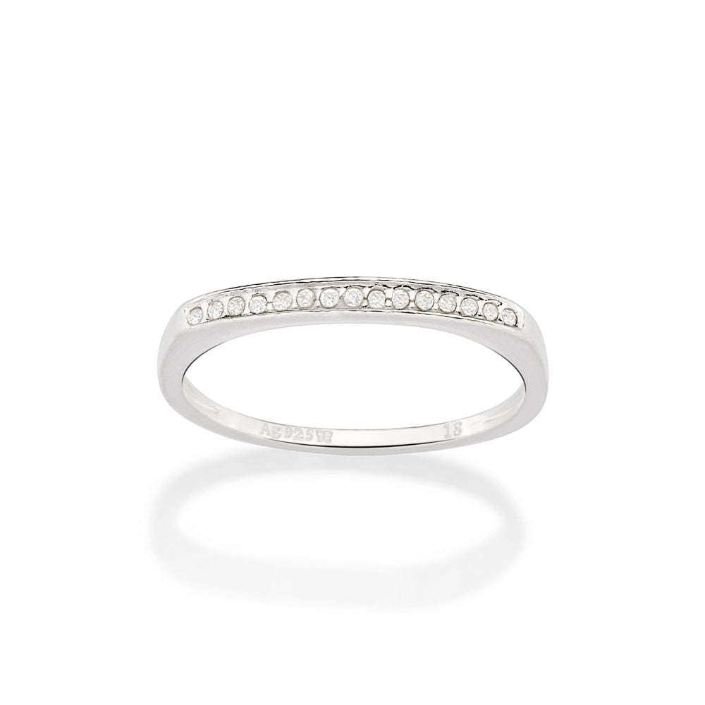 Silver 925 skinny ring studded by seventeen (17) zirconias measuring 1mm each. size: 14 to 24 (6 to 10).