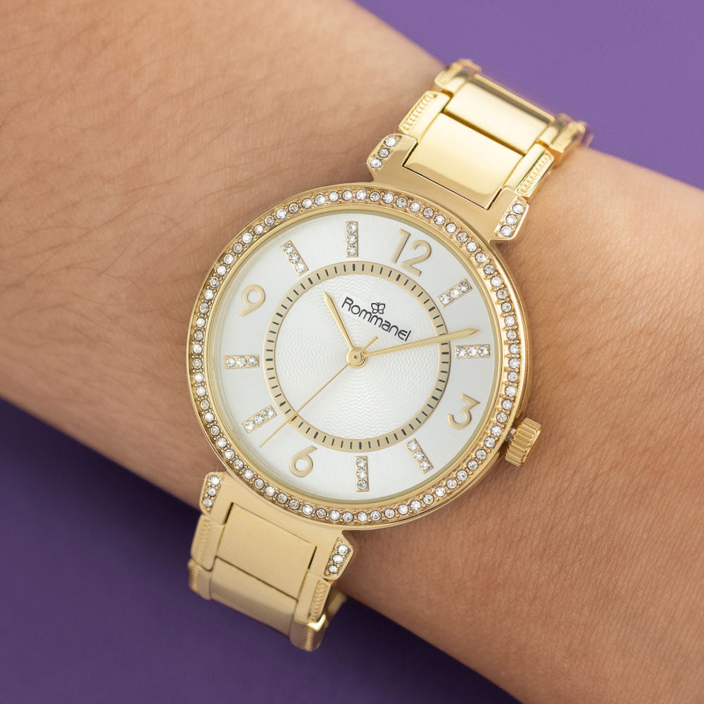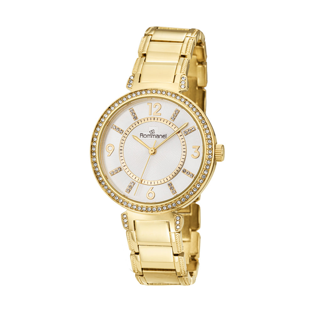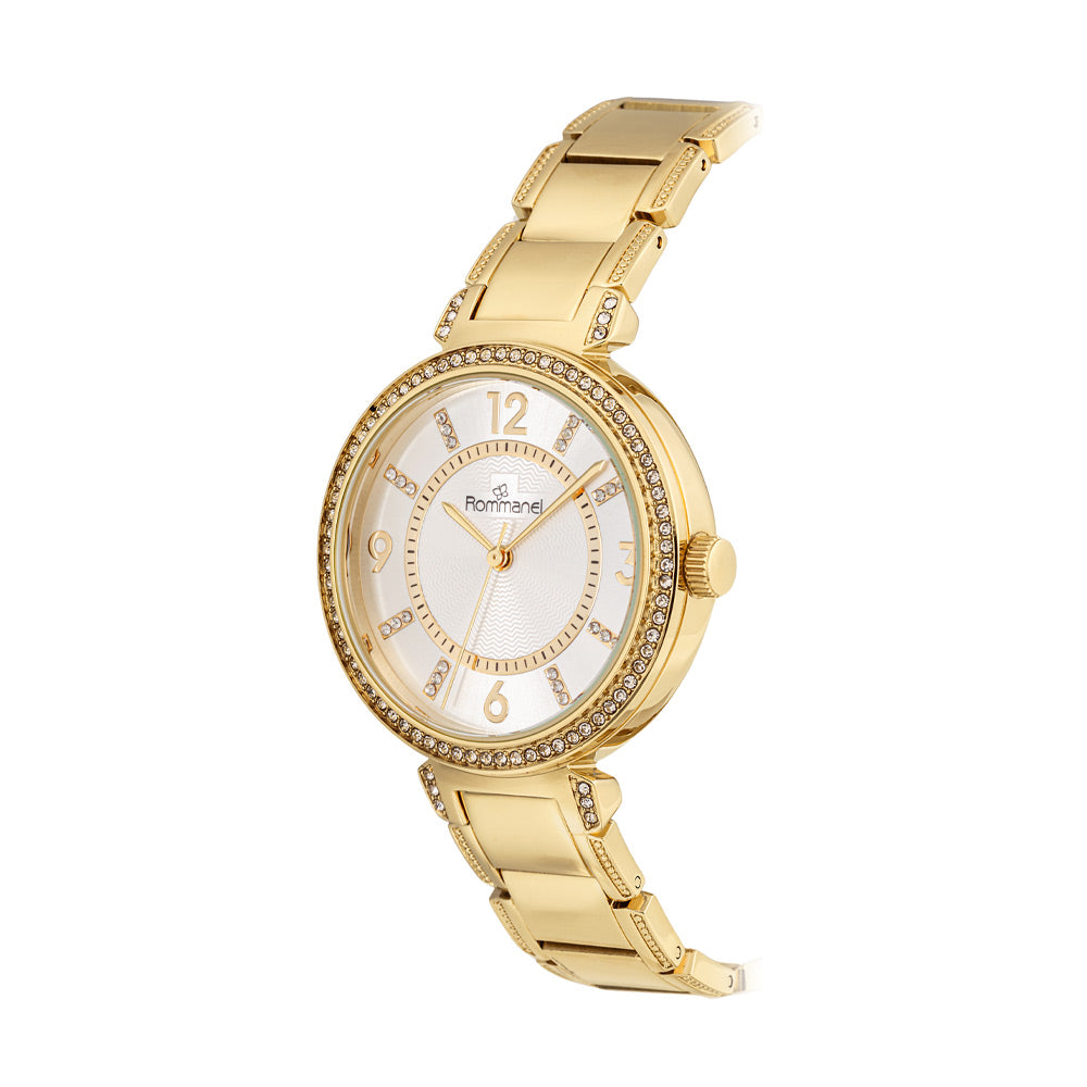 GOLD-TONE ANALOG DRESS WATCH WITH CRYSTALS