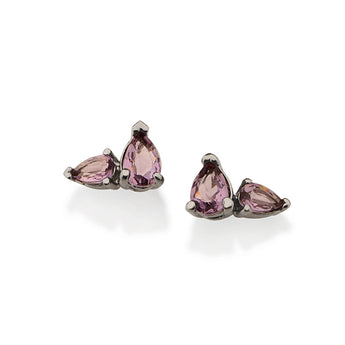 our newest capsule collection by gio antonelli, light, features pieces that bring positive vibes and energy. black rhodium stud earring composed of two (2) purple zirconias in the shape of a water droplet measuring 3x5mm and 5x7mm.â | size: 1 x 0.7cm.â | material: black rhodium plated.â | also available in gold plated. (licensed jewelry capsule collection gio antonelli 3nd edition)"