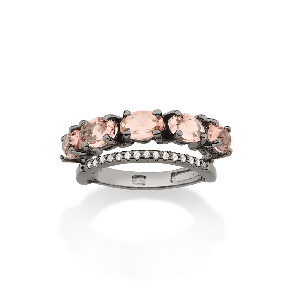BLACK RHODIUM DOUBLE BAND RING IN PINK