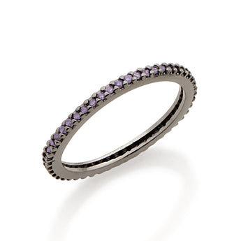 Rommanels joy for life by Ana hickmann collection was inspired by the happy moments in Ana hickmann life. these pieces were inspired by family and our teddy bear line showcases the delicacy and care of a Mothers day touch. black rhodium skinny ring studded with forty-nine (49) purple zirconias measuring 1mm each. number of zirconias can change depending on ring size. add a pop of color to your black rhodium look with this unique skinny ring. | material: black rhodium plated. | also available with pink, blue, white, or yellow zirconias and in rhodium or gold plated. (licensed jewelry collection Ana hickmann 20th edition)"