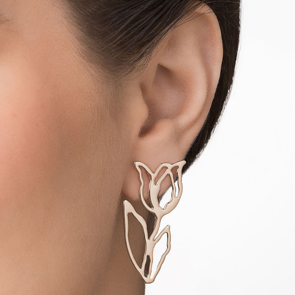 Inspired by blooming tulips, these 18k gold-plated elongated earrings feature a bold floral form and polished finish, ideal for a striking look. measures approx. 4.1 × 1.9 cm (1.61 × 0.75 in). (licensed ana hickmann collection)