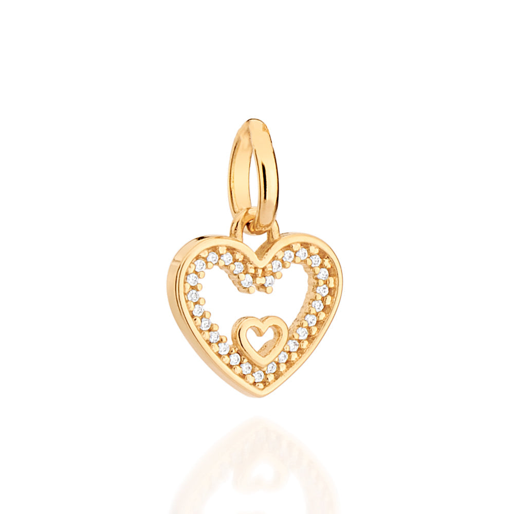 Gold plated pendant in the shape of a heart studded by twenty seven white zirconias measuring 0.8mm each. size: 1.7cm x 1.2cm.