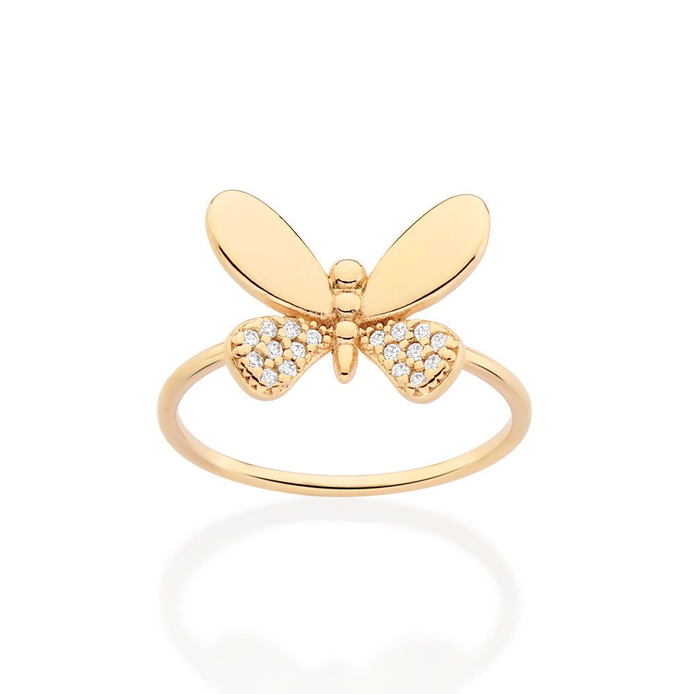 18k gold-plated skinny ring in the shape of a butterfly studded by eighteen (18) white zirconias measuring 1mm each.