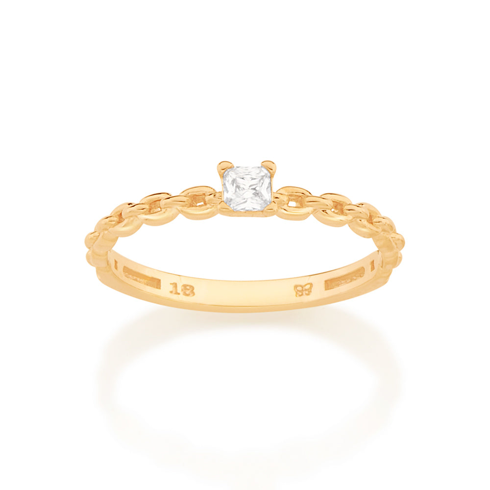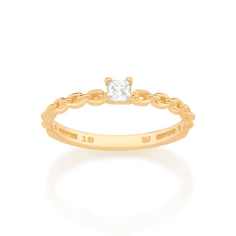 Rommanel's chains capsule collection by gio antonelli features necklaces, earrings, and rings plated in 18k gold plated and rhodium. this collection was inspired by thick chains that add a modern and edgy touch while still maintaining class and glamour. gold plated engagement style ring composed of a chained band with one (1) white zirconia measuring 3x3mm. | material: 18k gold plated. | also available in rhodium. (licensed jewelry capsule collection gio antonelli 2nd edition)"