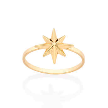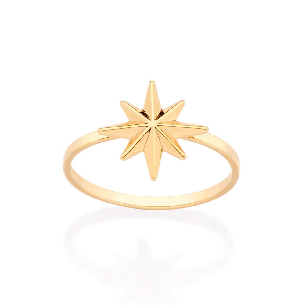 Gold plated skinny ring with a compass at the center.