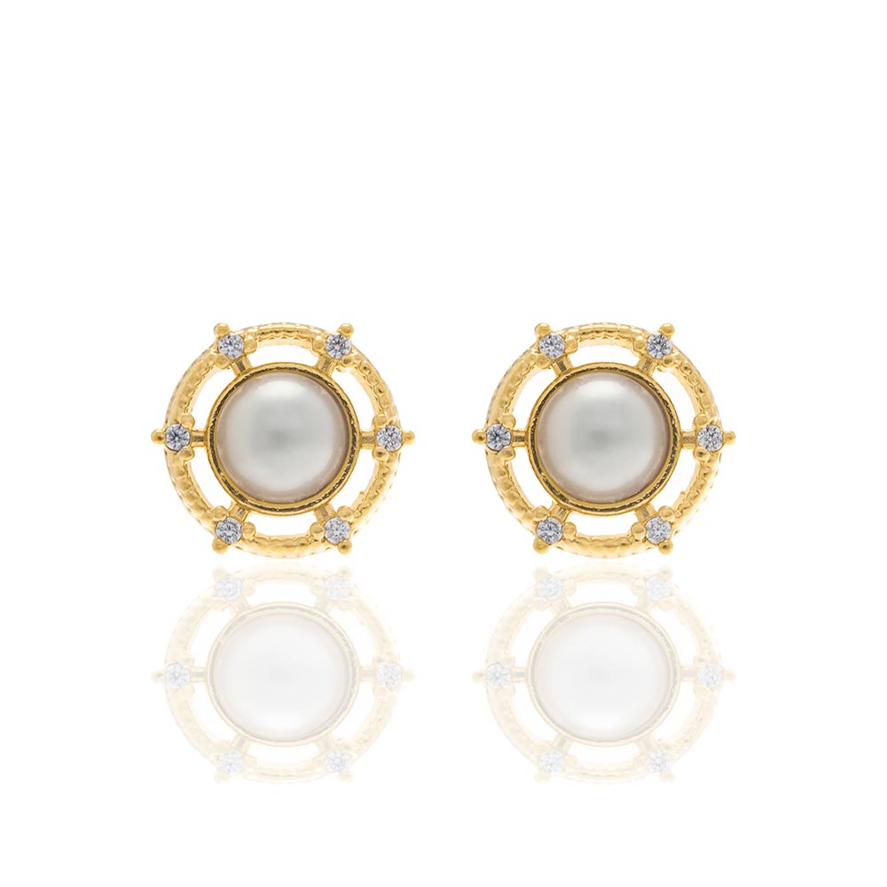 GOLD EARRING WITH PEARL AND ZIRCONIA