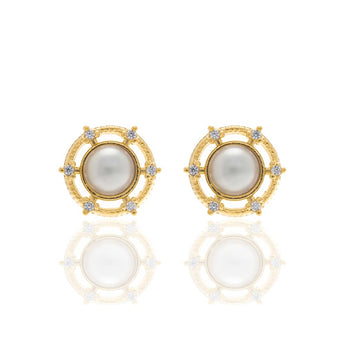 Gold plated earring with pearl and zirconia