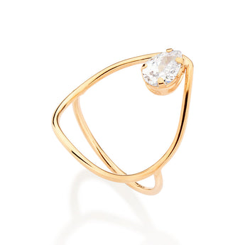 18k gold-plated skinny ring in the shape of a hollow droplet composed of one (1) white zirconia measuring 5x7mm. size: 6 to 10 3/4.?(licensed jewelry collection giovanna antonelli)