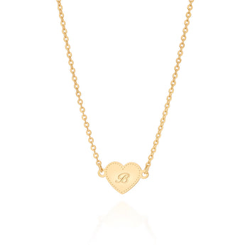 Gold plated necklace composed of a cable link chain with 1 heart pendant with engraved initial. size: 50cm - can be adjusted to 45cm (19.69in - can be adjusted to 17.72in).