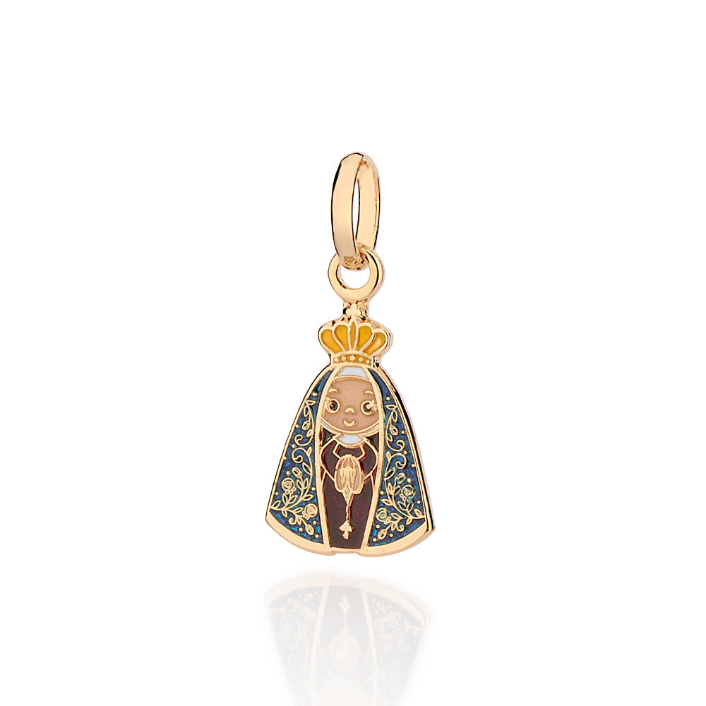 18k gold-plated pendant in the image of our lady revealed with color resin application.?size: 2.3cm x 1cm (0.91in x 0.39in).