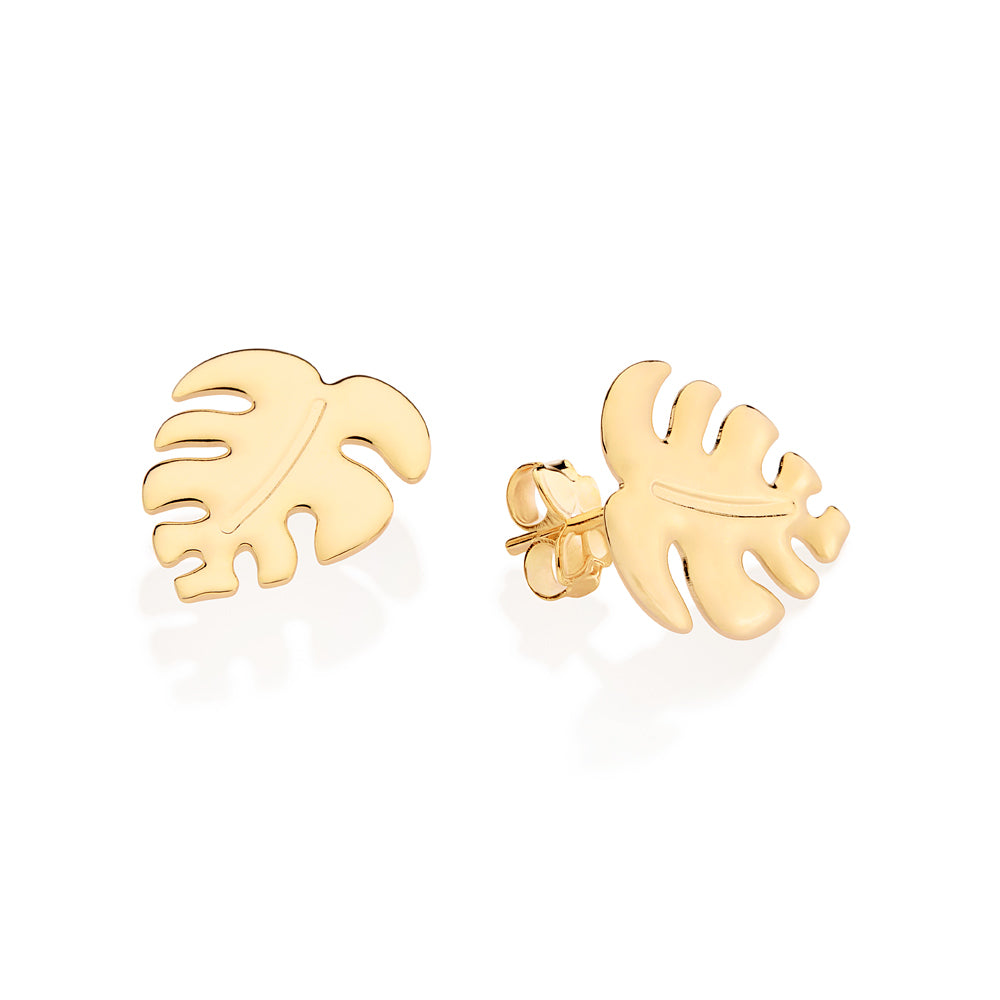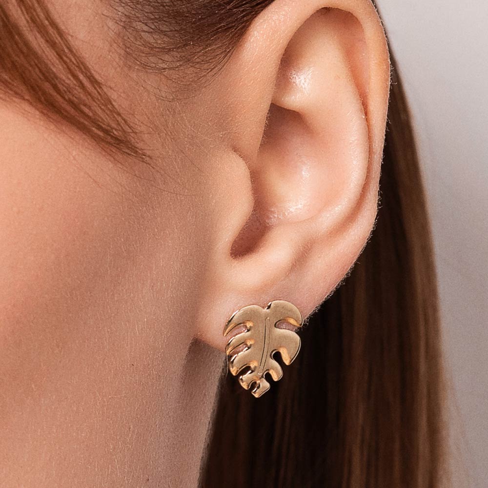 18k gold-plated stud earrings in the shape of a leaf. Size: 1.7cm x 1.4cm.