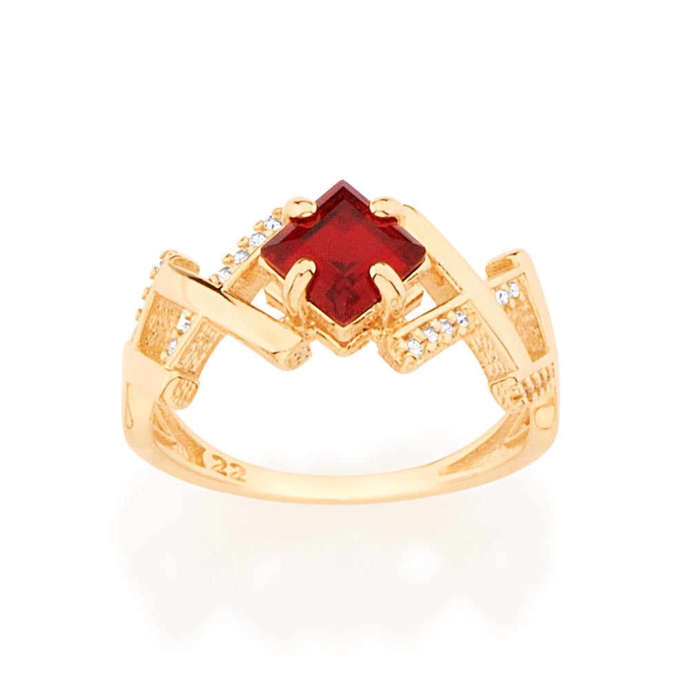GOLD RING WITH CRYSTAL AND ZIRCONIA