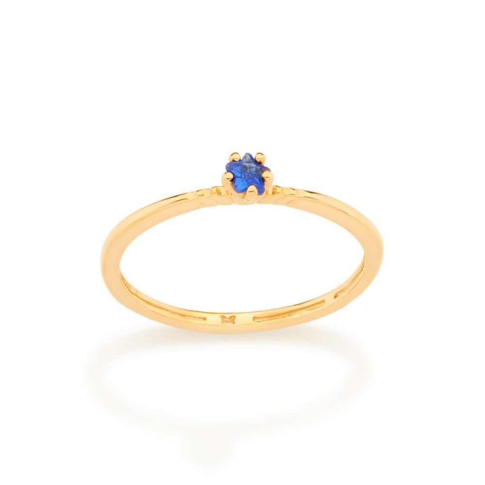 our newest collection signed by our muse, Ana hickmann, represents our love for our homeland, brazil. it represents the colors, flora and fauna found in our loved country. gold plated skinny ring composed of one (1) cubic zirconia in the shape of a star in blue measuring 3x3mm. | material: 18k gold plated. (licensed jewelry collection Ana hickmann 22st edition)"
