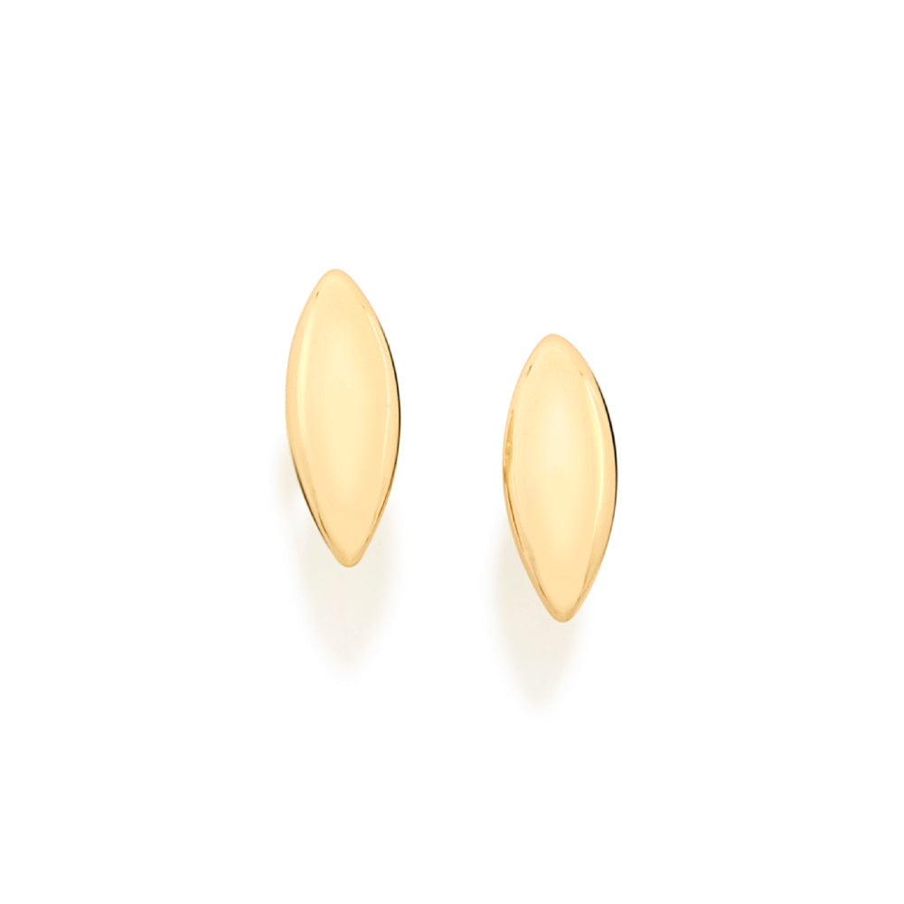 Rommanel is so proud to announce our ten years anniversary collection with Ana hickmann - celebrate! this collection is full of beautiful pieces for you to wear, just in time for the holidays. gold plated stud earrings in the shape of a tiny leaf. | size: 7mm x 3mm. | material: 18k gold plated. (licensed jewelry collection Ana hickmann - celebrate)"