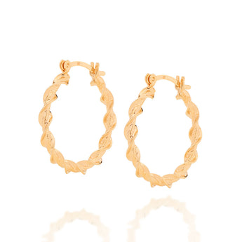 Rommanel's 2020 collection, colors of life, shows us that every color takes us to a special moment, memory, feeling, or experience in our life. by putting all those colors together, we have an amazing understanding and experience of life.â in our collection's subcategoy, sunlight, you will find pieces illuminate your look and inspire you to reach your full potential.â gold plated small hoops composed of a twisted and textured band.â | size: 2.6cm in diameter. | material: 18k gold plated.â (licensed jewelry collection 2020 - 1st cycle)"