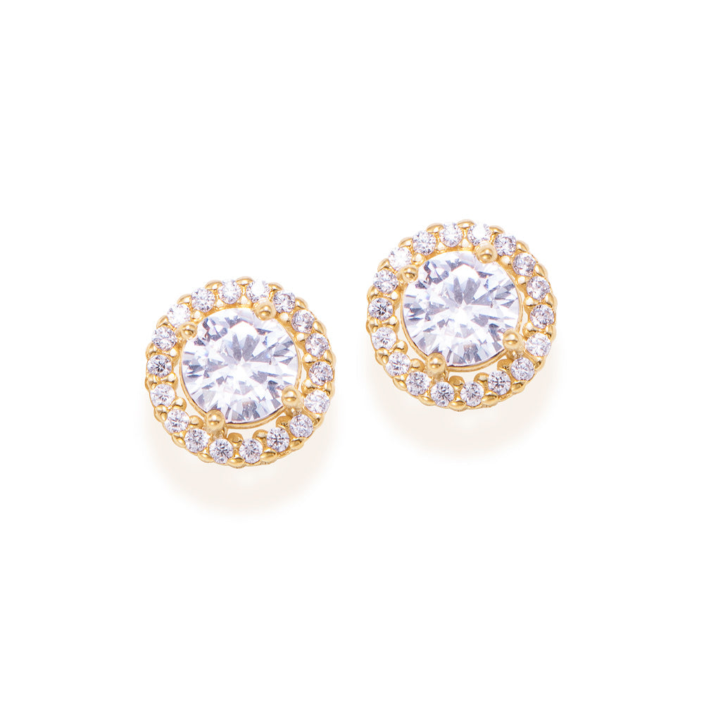 Rommanels newest collection - your way by giovanna antonelli - focuses on the importance of being yourself. in this collection, we brought you pieces that can be worn and styled in multiple ways so that you can create looks that take you from classic to fashionista in an instant. gold plated stud earrings composed of eighteen (18) white zirconias measuring 1.25mm and one (1) white zirconia measuring 6mm at the center. | size: 10mm in diameter. | stone: zirconia. | material: 18k gold plated. (licensed jewelry collection giovanna antonelli - your way)"