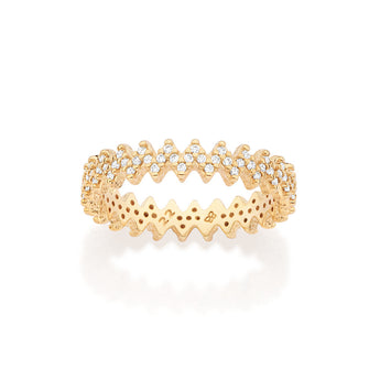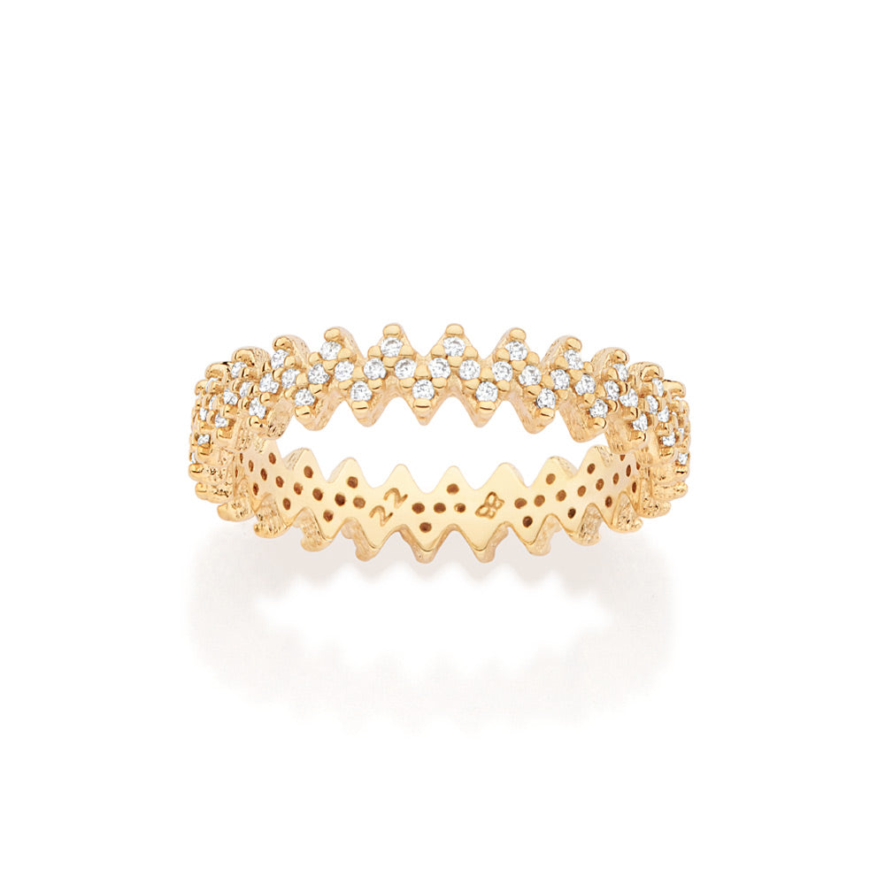 18k gold-plated skinny ring composed of a zig zag design and studded by eight-four (84) zirconias measuring 1mm each.?size: 14 to 26 (6 to 10 3/4).