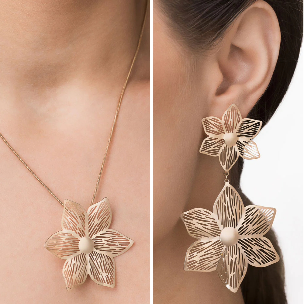 JEWELRY SET GOLD GARDEN OUTLINE MAXI (PENDANT + EARRING)