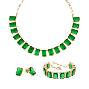 JEWELRY SET GOLD PLATED WITH GREEN CRYSTAL