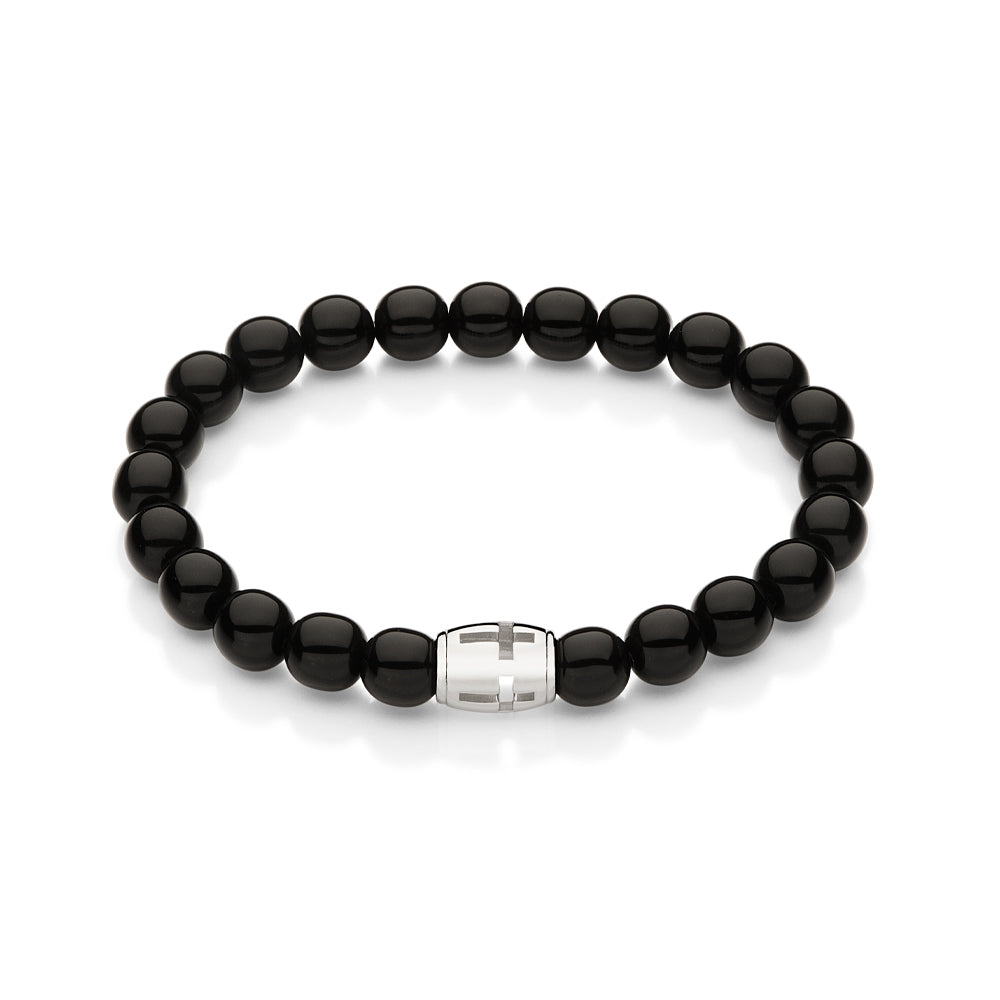 Platinum bracelet composed of 23 black beads measuring 8mm each and one pendant with three hollow crosses on it. size: 6.5cm in diameter (2.6in in diameter).