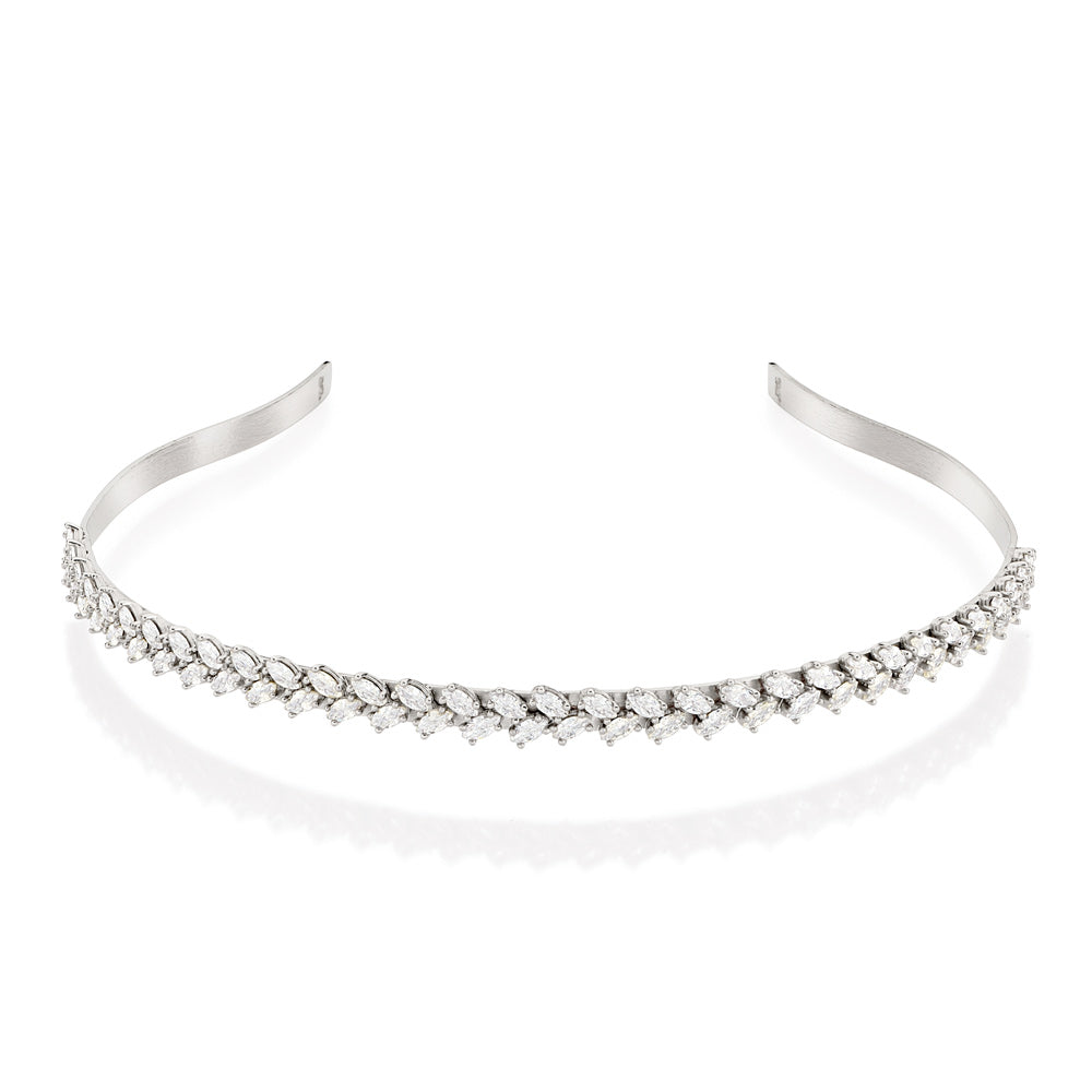 Platinum headband studded with 52 white zirconias measuring 4x8mm each. | size: 13.5cm in diameter.