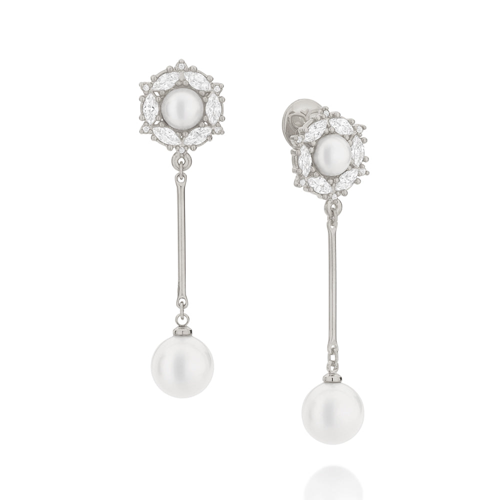 Rhodium plated earring with pearl and zirconia
