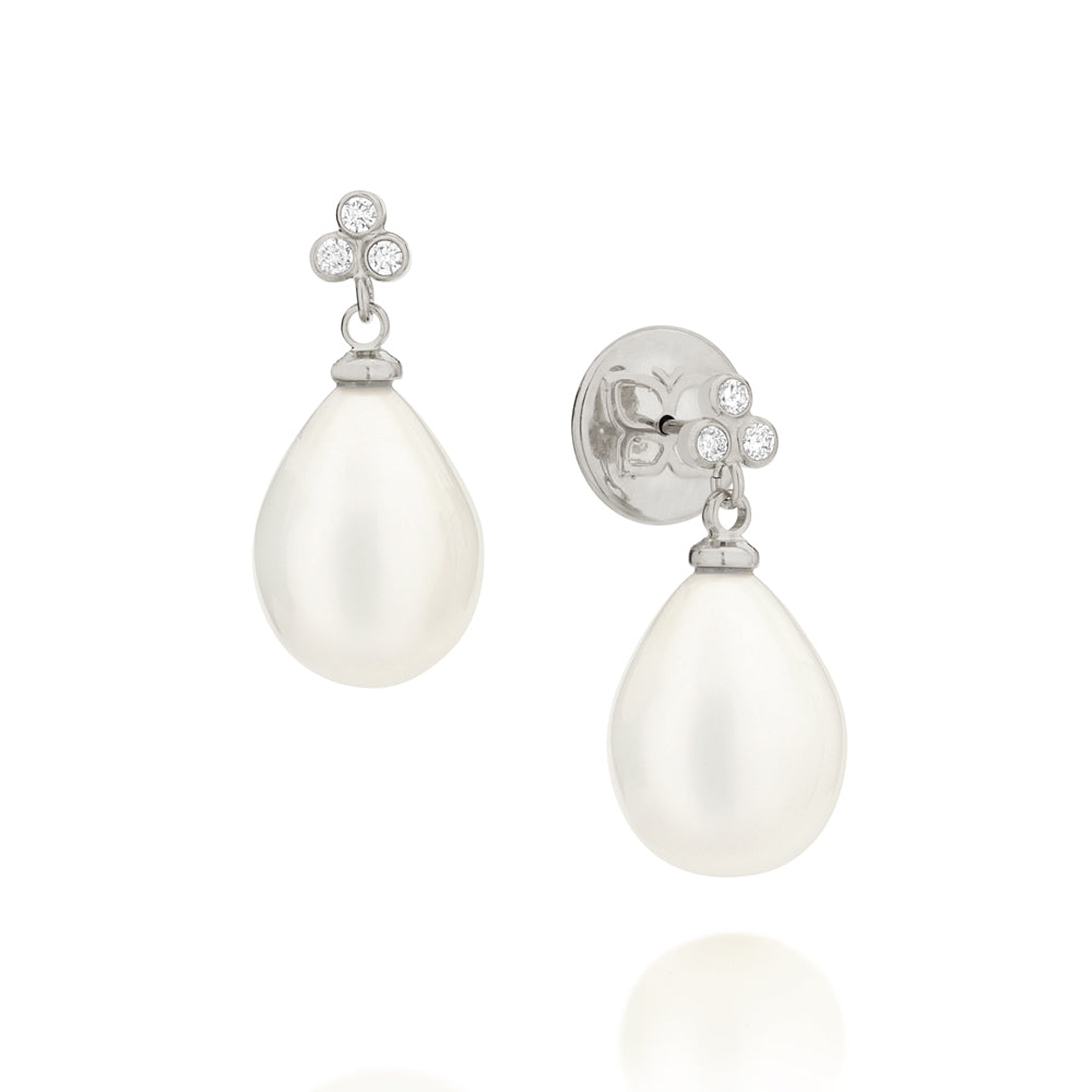 RHODIUM PLATED EARRING WITH PEARL AND ZIRCONIA