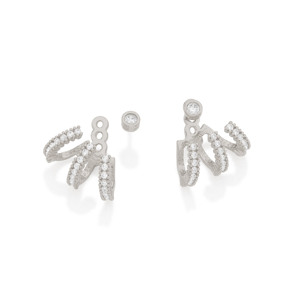 Rhodium plated earring with zirconia