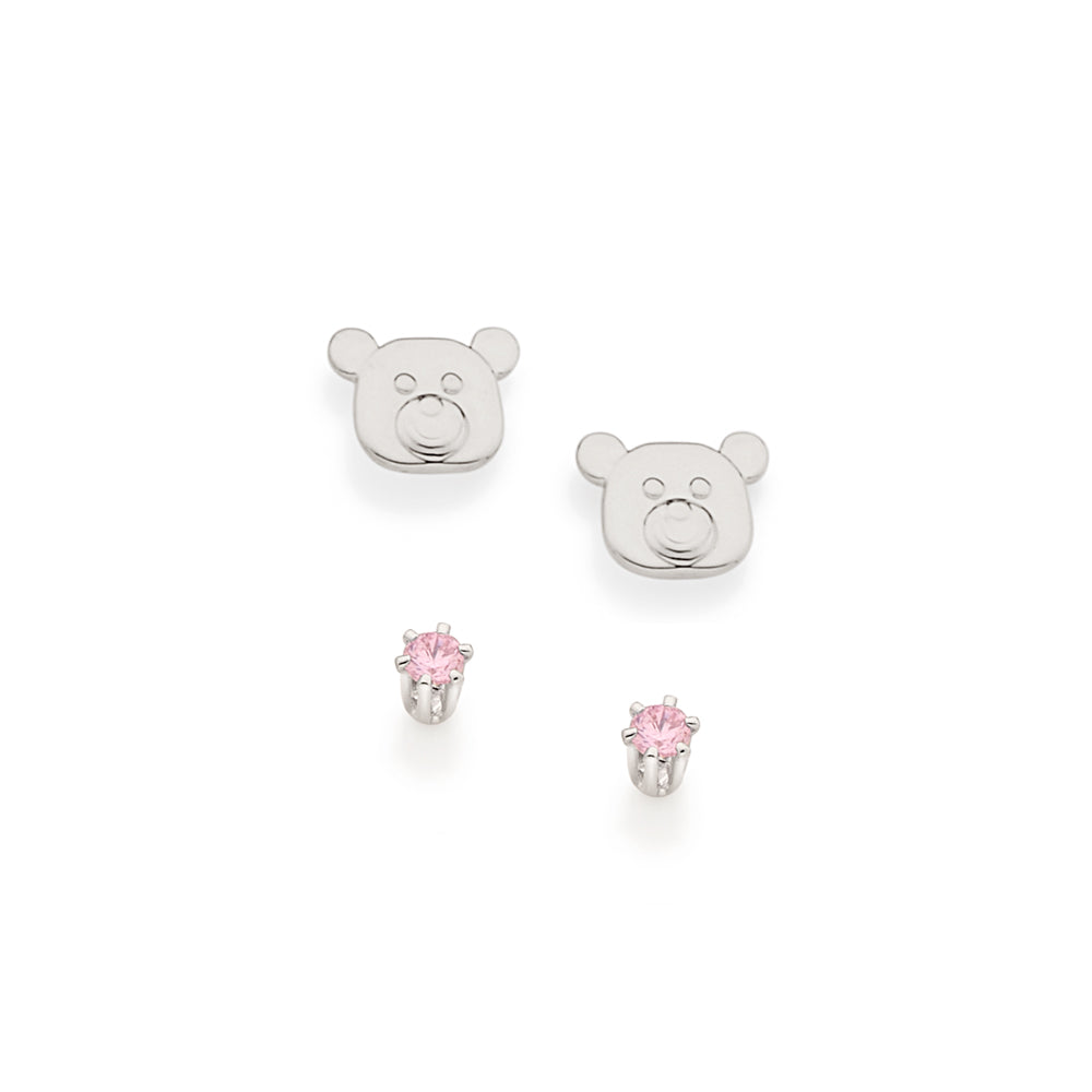RHODIUM TEDDY BEAR FACE EARRING KIT IN PINK