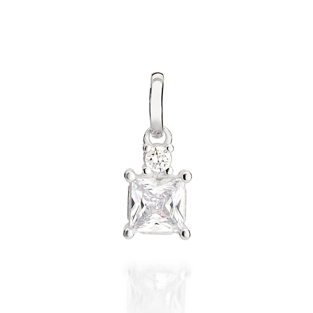 Silver 925 pendant composed of one (1) white zirconia measuring 3mm and one (1) white zirconias measuring 6x6mm.?size: 1.8cm x 0.8cm (0.55in x 0.31in).