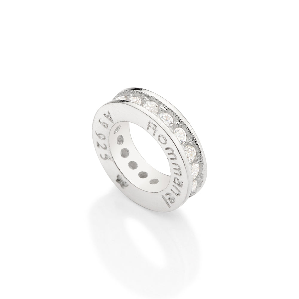 Silver 925 stopper charm studded by seventeen (17) white zirconias measuring 1mm each. size: 0.7cm in diameter (0.28in in diameter).