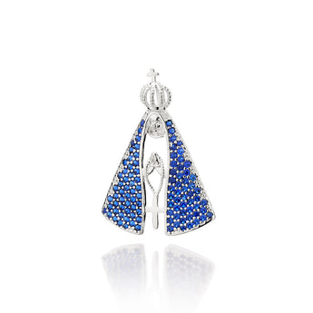 Silver 925 pendant in the shape of our lady revealed studded by one hundred and two (102) blue zirconias measuring 1mm each. size: 2.8cm x 2cm (1.1in x 0.79in).