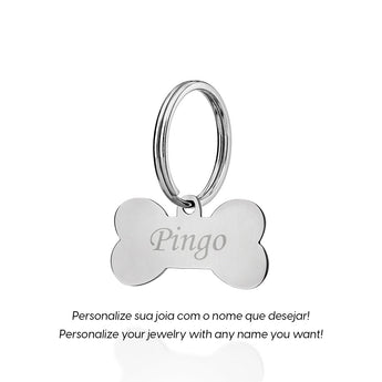 Stainless steel pet tag in the shape of a bone for personalization. size: 4.4cm x 3.4cm (1.7in x 1.3in).